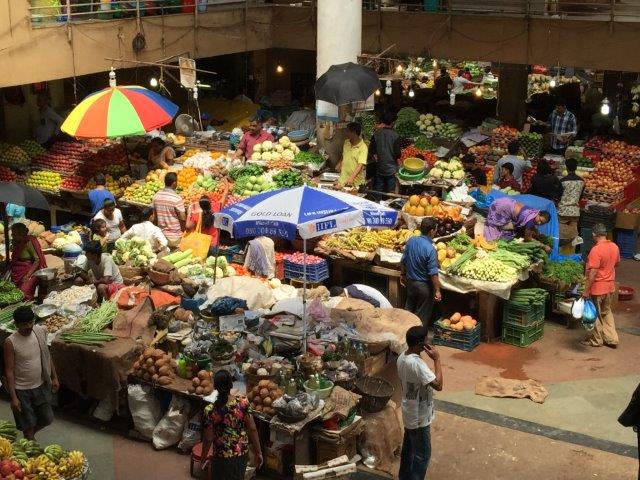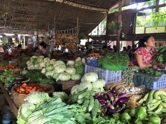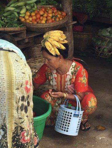 Then we plunged into the busy town to visit the market. Easily the most fun of all the markets we’ve seen. The “bus” is so crowded the bags go on top and the conductor swings off the back …