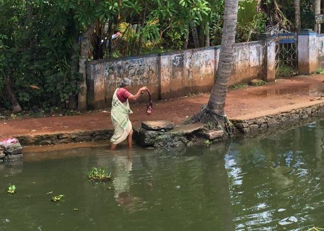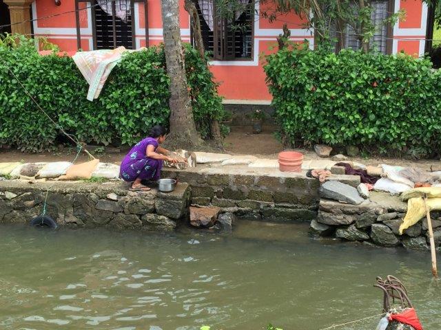 But the locals still carry on the practices of centuries. This woman bashing her washing on a stone …