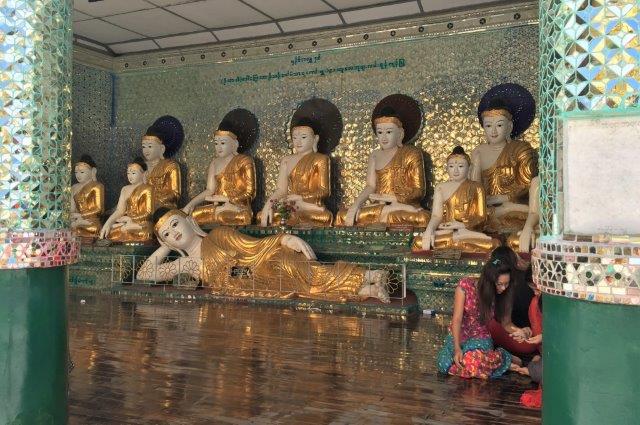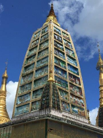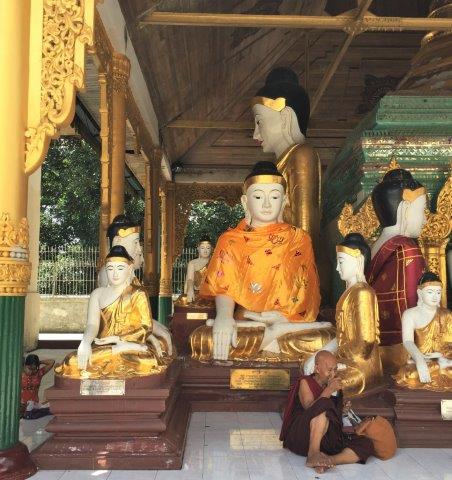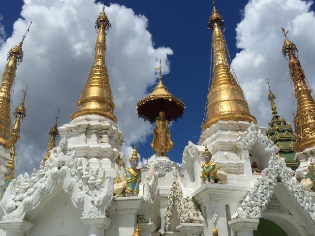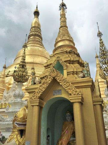 Our one stop in Yangon was the amazing Shwedagon Pagoda. Gold with precious stones on top …