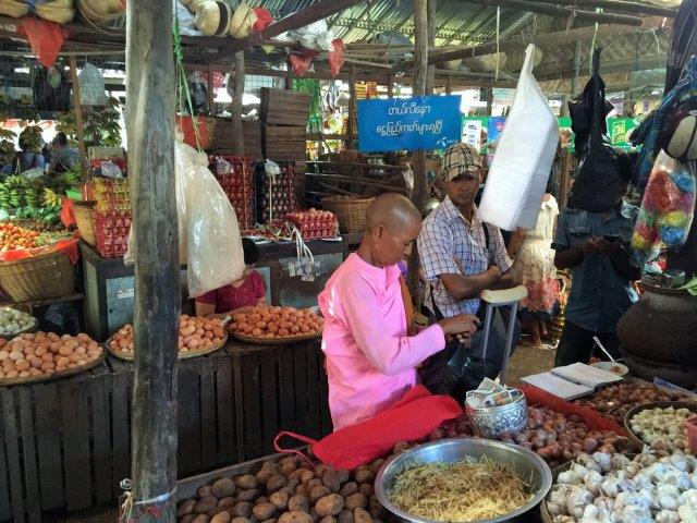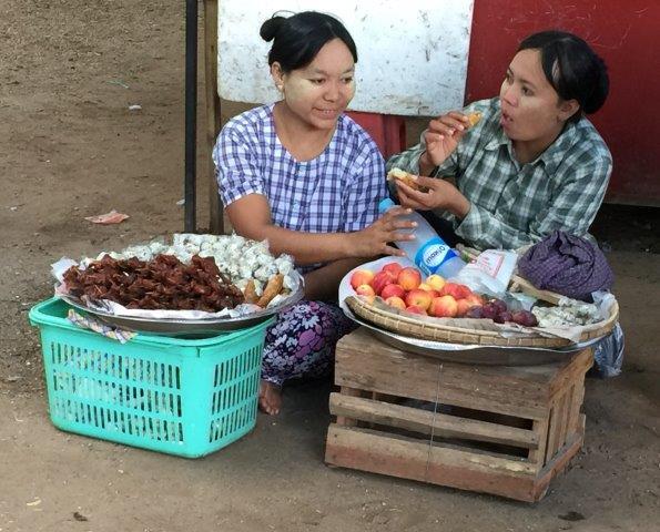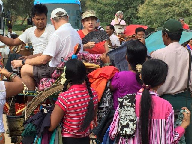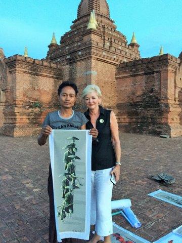 Here, our first taste of Burmese “vendors” … very persistent! Jan bought this sand painting for not very much.