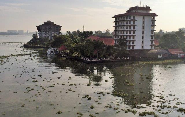 As we sailed towards Cochin, and many miles out to sea, there were acres of water hyacinth all around the ship.