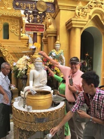 One tradition is to wash the Buddha that celebrates the day of the week of your birth. Jan Monday, Geoff Wednesday.