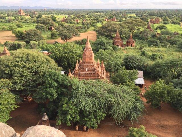 From the little Bagan airport we rushed to this temple for a “sunset” view. Along the way passing dozens (hundreds?) of little (and big) temples and stupas. There are 2500 of them at Bagan!