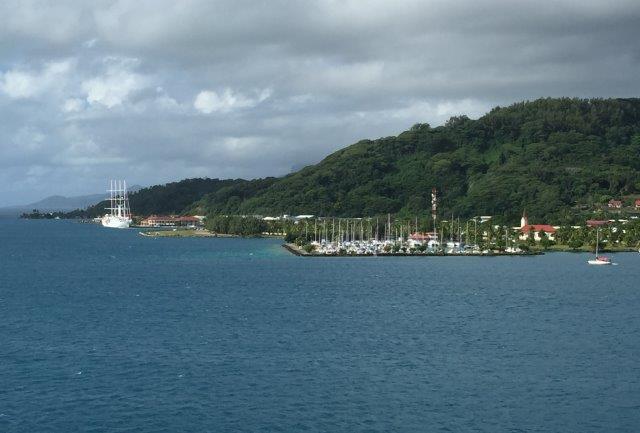 First day, Raiatia and it’s twin island of Taha’a … rain and a huge surf breaking on the fringing reef of Taha’a welcomed us … it was something of an indication of the day to come … sunny breaks between heavy rain showers driven by strong winds.