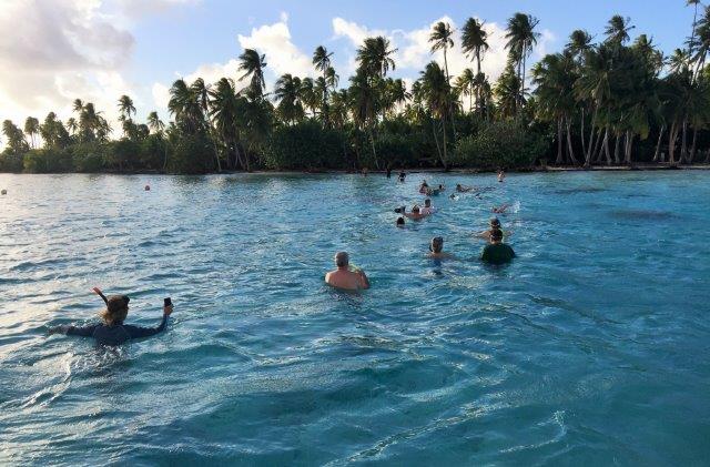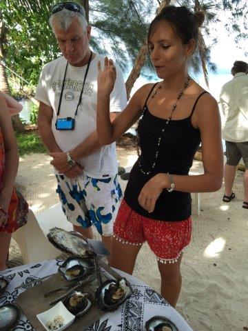 We then had a great lunch of local produce (seafoods and fruits) on this little sand island (motu) … time for a swim after lunch …