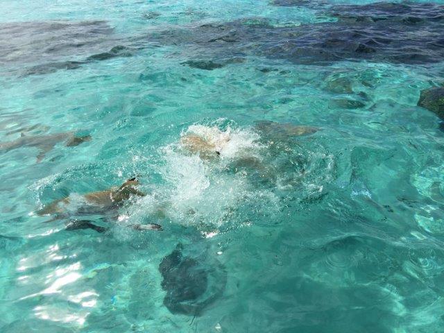 The rays were up to about 700mm across and the sharks were maybe 1.2 metres. Afterwards we fed an annoying tourist to the sharks …