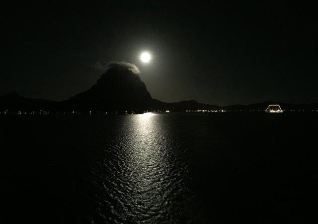 Back on the ship, a point blank view of the mountain as sunset approaches …