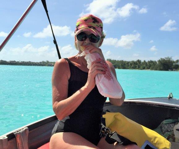 … and then it was time for lunch … dropped anchor in the lagoon and ate our baguettes and drank local juice …