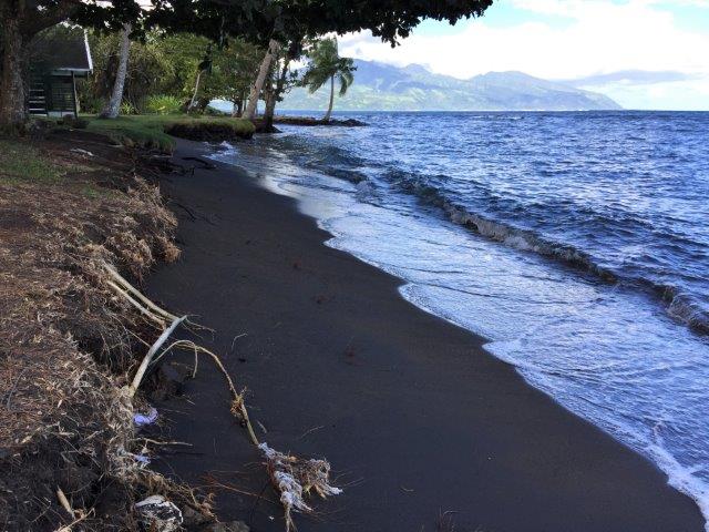But adjacent was a beautiful Botanic Garden … unfortunately not enough time to explore … and also this – one of the best, cleanest examples of the little black sand beaches that occur all over the place.