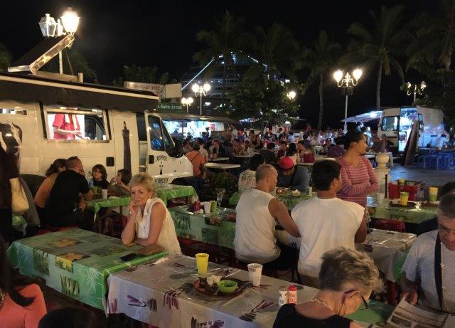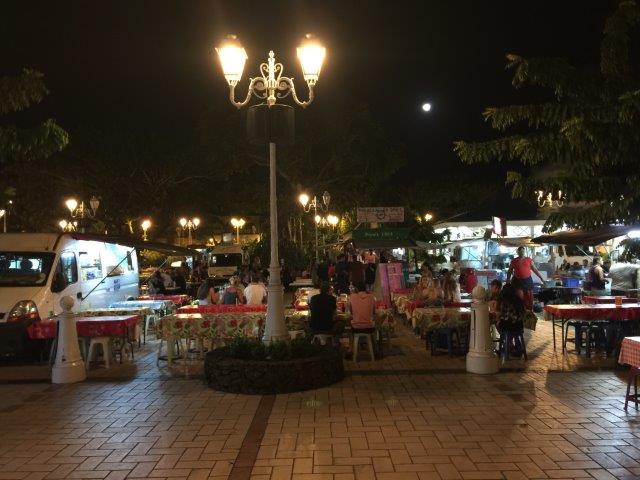 The ship didn’t leave until midnight, so after dinner we went out and joined the locals who come out with food trucks, plastic chairs and tables to create a temporary “Hawker Centre”. Jan is waiting here patiently for her perfectly delicious Crepe – butter, brown sugar and lemon, YUM … mine was banana!