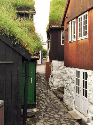 The old Torshavn still has numbers of traditional houses and narrow lanes near the busy harbour …