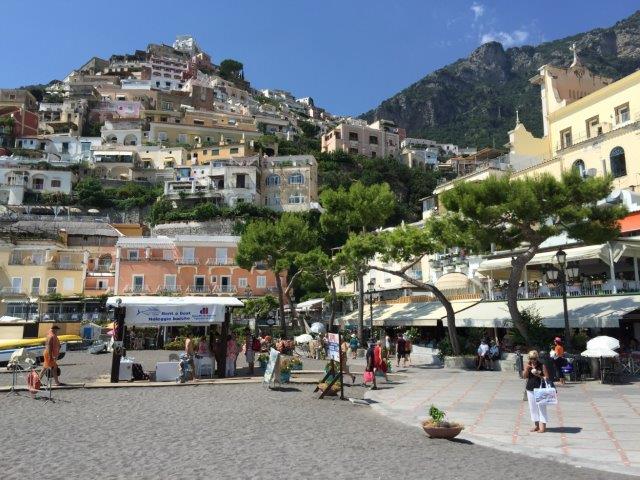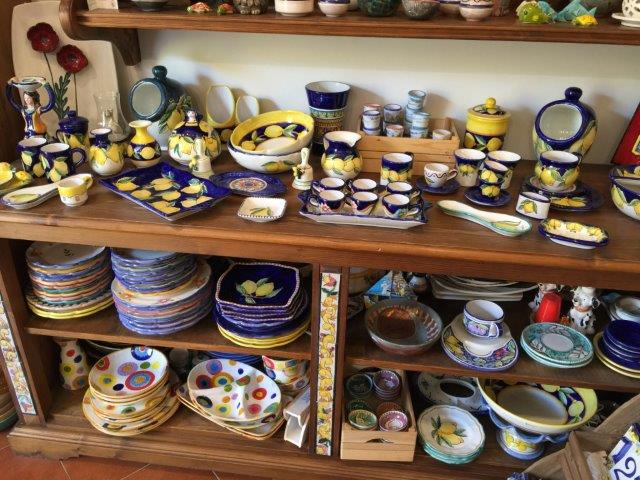 We were to get cash from an ATM on the way … we suddenly stop in the middle of the road (about 1.5 cars wide at this point … “get out here” “be quick” “get the cash” … oh no!!! … the ATM is out of order (or cash I suspect)!! … problem, drive on, problem … “let’s stop at this ceramics factory” … we’ll bullshit our way into getting cash on a Visa card from there … lots of rapid Italian and arm waving … the proprietor finally reluctantly agrees … cash in hand we’re off again. Positano is in sight.