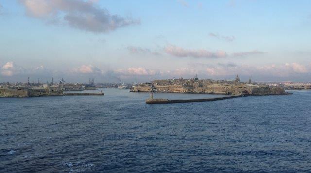 Valetta harbour is tiny and extraordinarily busy. You can see the whole harbour here behind the breakwaters. We went in and parked between those two big cruise ships.